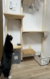 毎日膝の上にのって毛繕いをしたり、そのまま気持ちよさそうに眠ったりと甘えんぼな一面もたくさん見せてくれています(^^)ご家族の皆さんがチョビくんのためにDIYで作ってくれたキャットタワーもお気に入りの様子♡